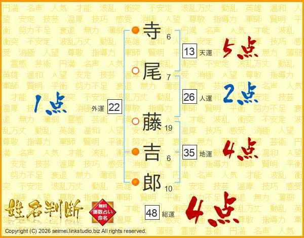 寺尾藤吉郎さんの総運は48画の4点!