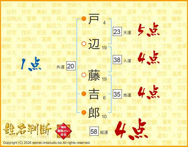 戸辺藤吉郎さんの総運は58画の4点!