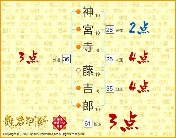 神宮寺藤吉郎さんの外運は36画の3点!
