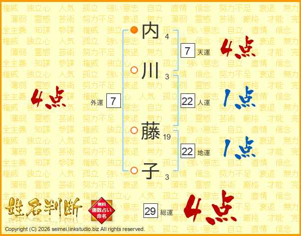 内川藤子さんの天運は7画の4点!