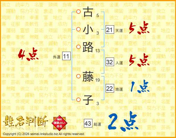 古(5画)小(3画)路(13画) 藤(19画)子(3画)