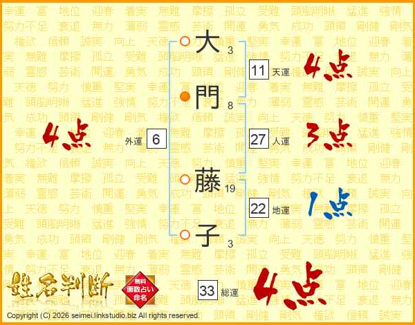 大門藤子さんの総運は33画の4点!
