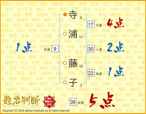 寺(6画)浦(11画) 藤(19画)子(3画)