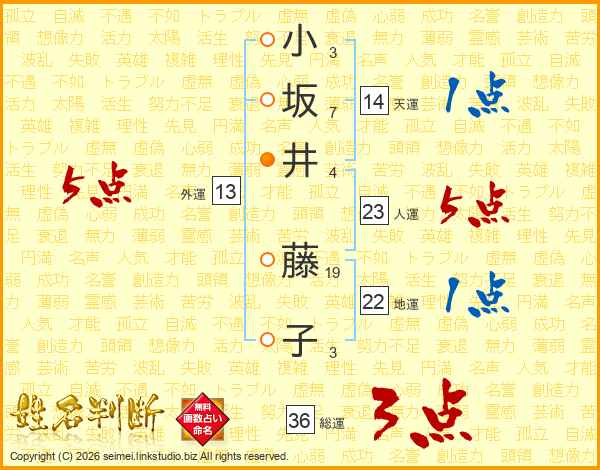 小坂井藤子さんの総運は36画の3点!