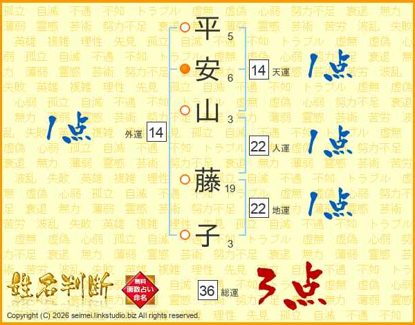 平(5画)安(6画)山(3画) 藤(19画)子(3画)