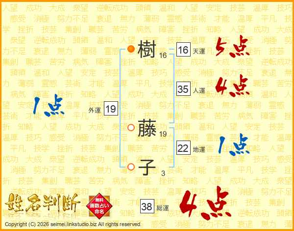 樹藤子さんの総運は38画の4点!