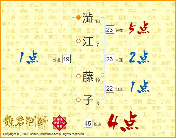 澁江藤子さんの総運は45画の4点!