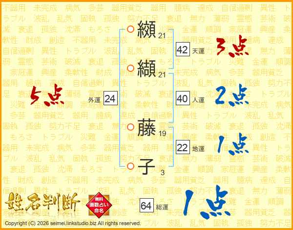 纐(21画)纈(21画) 藤(19画)子(3画)