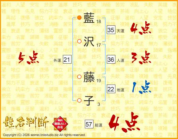 藍(18画)沢(17画) 藤(19画)子(3画)