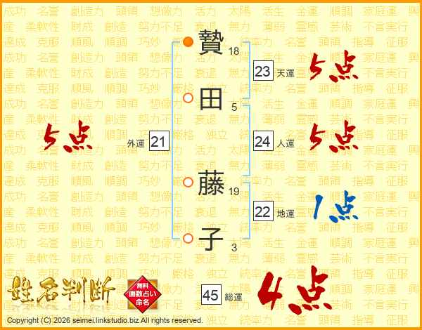 贄田藤子さんの総運は45画の4点!