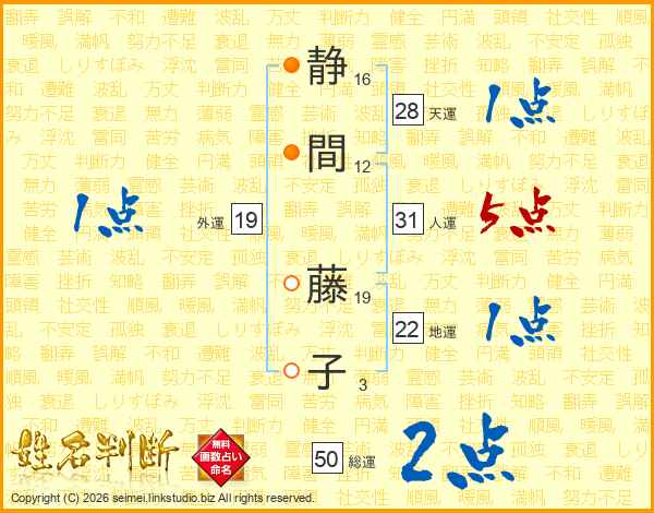 静間藤子さんの総運は50画の2点!