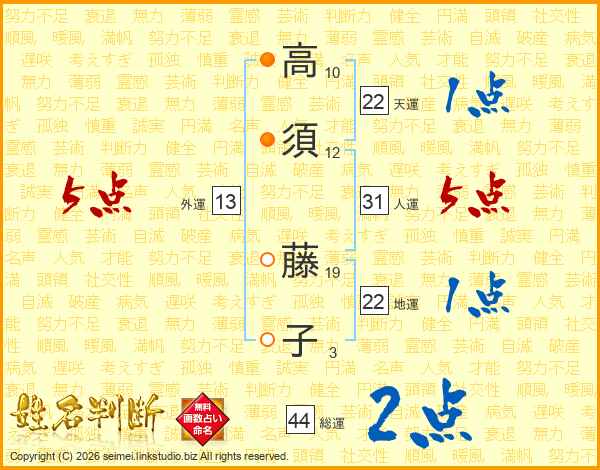 高須藤子さんの総運は44画の2点!
