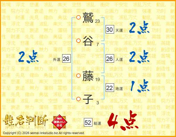 鷲谷藤子さんの総運は52画の4点!