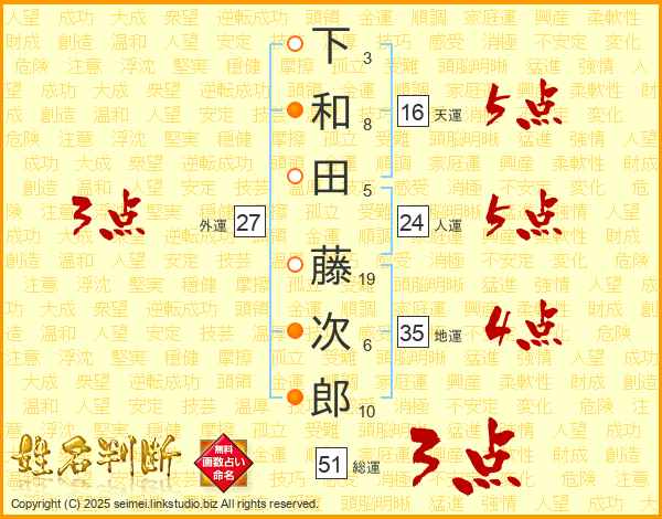 下(3画)和(8画)田(5画) 藤(19画)次(6画)郎(10画)