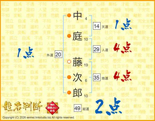 中庭藤次郎さんの総運は49画の2点!