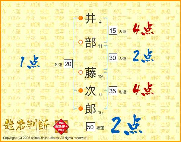 井(4画)部(11画) 藤(19画)次(6画)郎(10画)