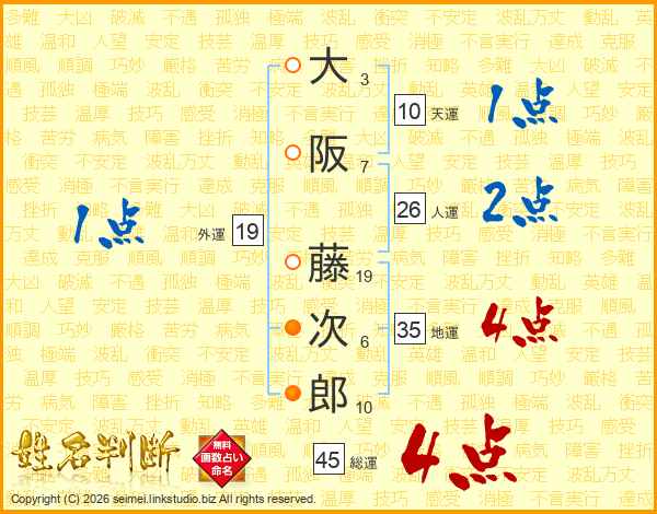 大阪藤次郎さんの総運は45画の4点!
