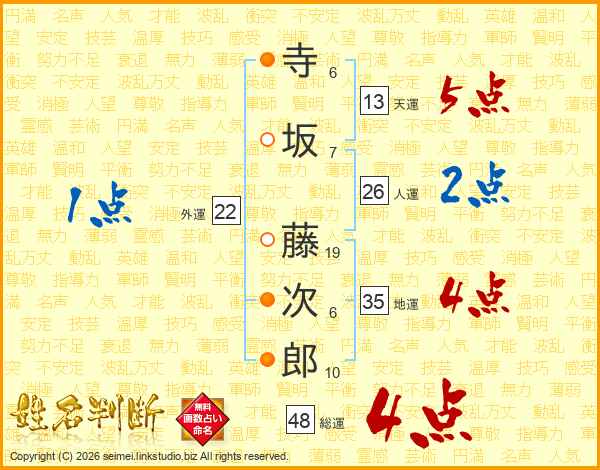 寺坂藤次郎さんの人運は26画の2点!