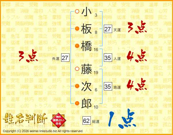 小板橋藤次郎さんの天運は27画の3点!