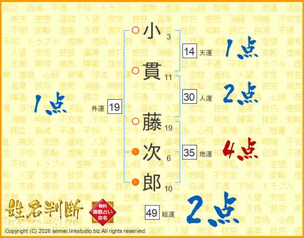 小貫藤次郎さんの総運は49画の2点!