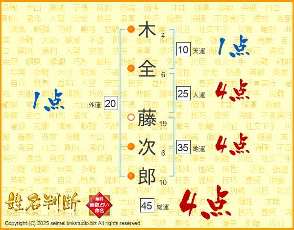 木全藤次郎さんの総運は45画の4点!