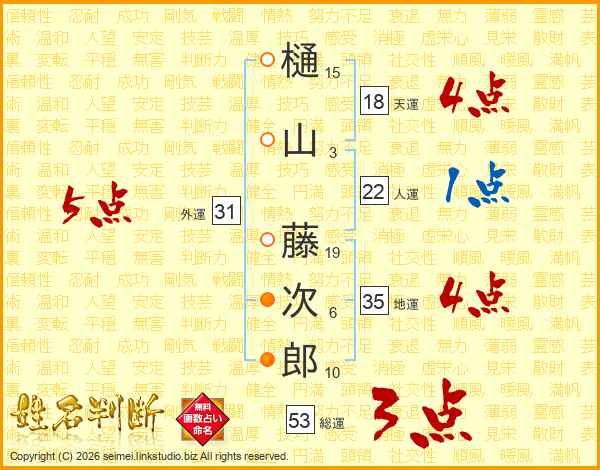 樋山藤次郎さんの総運は53画の3点!