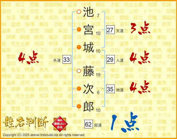 池(7画)宮(10画)城(10画) 藤(19画)次(6画)郎(10画)