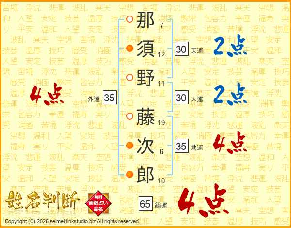 那須野藤次郎さんの総運は65画の4点!