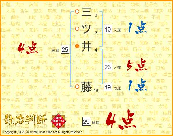 三ツ井藤さんの総運は29画の4点!