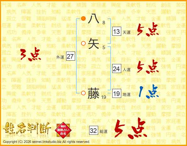 八矢藤さんの総運は32画の5点!