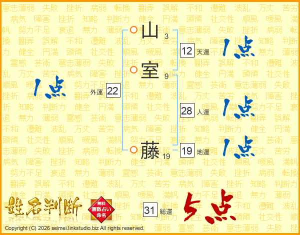 山室藤さんの総運は31画の5点!