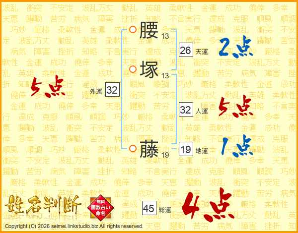 腰塚藤さんの総運は45画の4点!