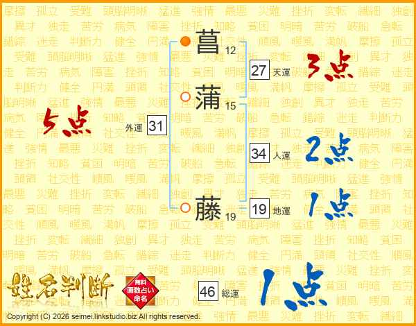 菖蒲藤さんの総運は46画の1点!