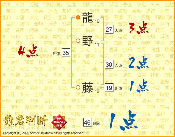 龍野藤さんの総運は46画の1点!