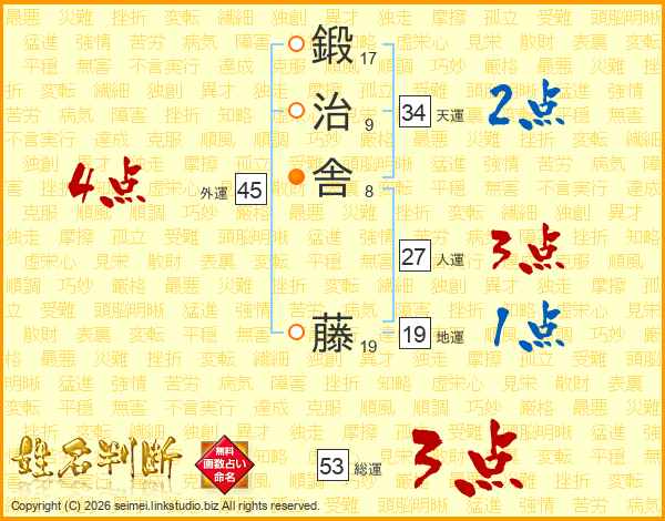 鍛治舎藤さんの総運は53画の3点!