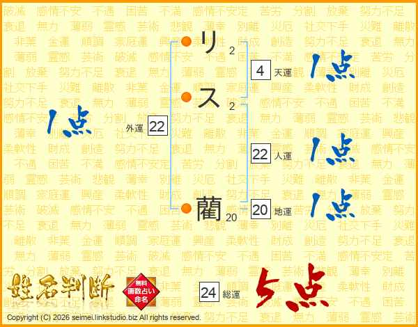 リス藺さんの総運は24画の5点!