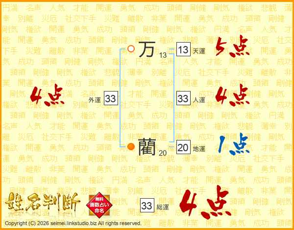 万藺さんの総運は33画の4点!