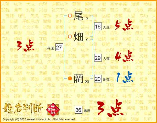 尾畑藺さんの総運は36画の3点!