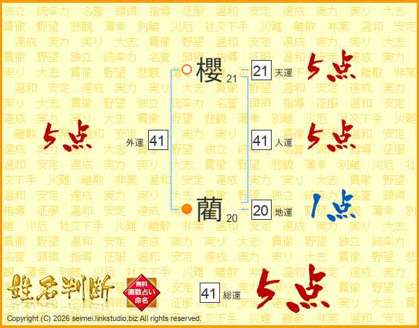 櫻藺さんの総運は41画の5点!