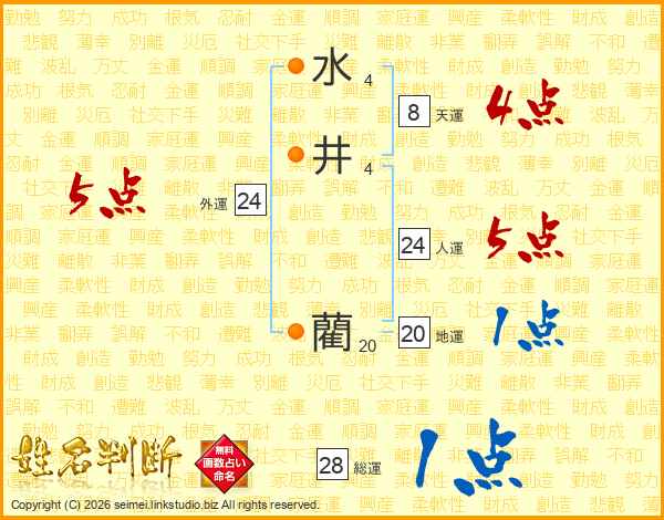 水井藺さんの総運は28画の1点!