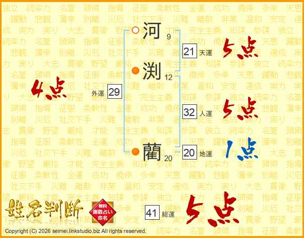 河渕藺さんの総運は41画の5点!
