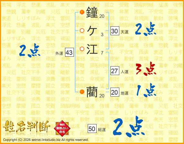 鐘ケ江藺さんの総運は50画の2点!