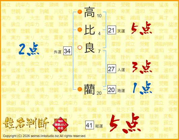 高比良藺さんの総運は41画の5点!