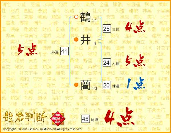 鶴井藺さんの総運は45画の4点!