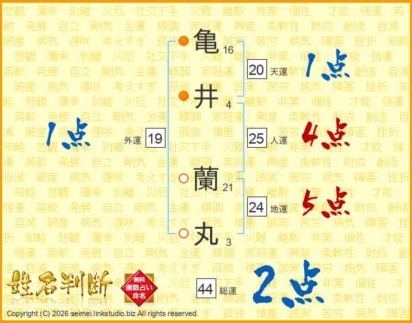 亀井蘭丸さんの総運は44画の2点!
