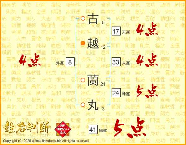 古越蘭丸さんの総運は41画の5点!