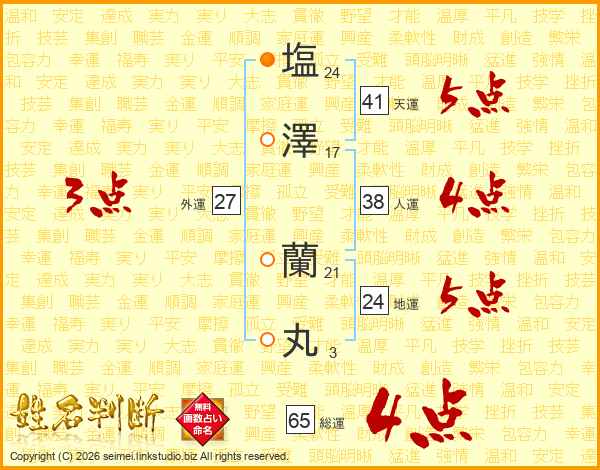 塩澤蘭丸さんの総運は65画の4点!