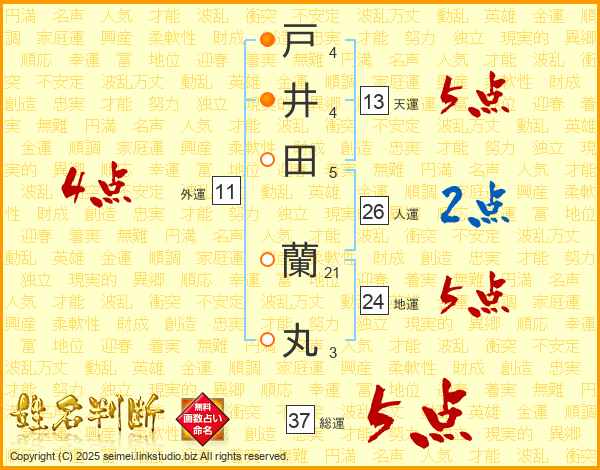 戸(4画)井(4画)田(5画) 蘭(21画)丸(3画)