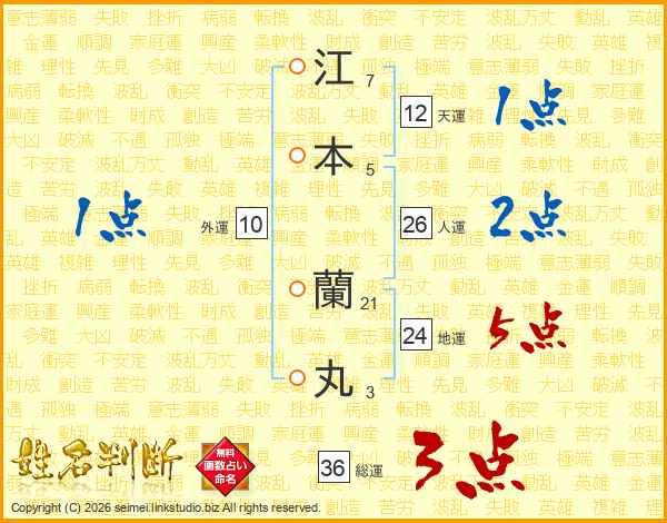 江(7画)本(5画) 蘭(21画)丸(3画)