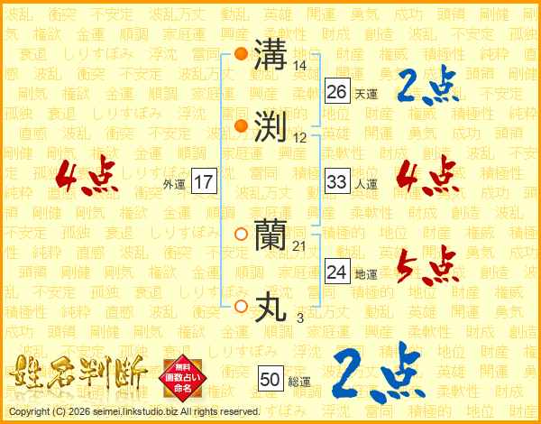 溝(14画)渕(12画) 蘭(21画)丸(3画)